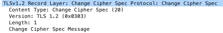 算好会话密钥后,客户端会发一个「Change Cipher Spec 」消息,告诉服务端后续改用对称算法加密通信。