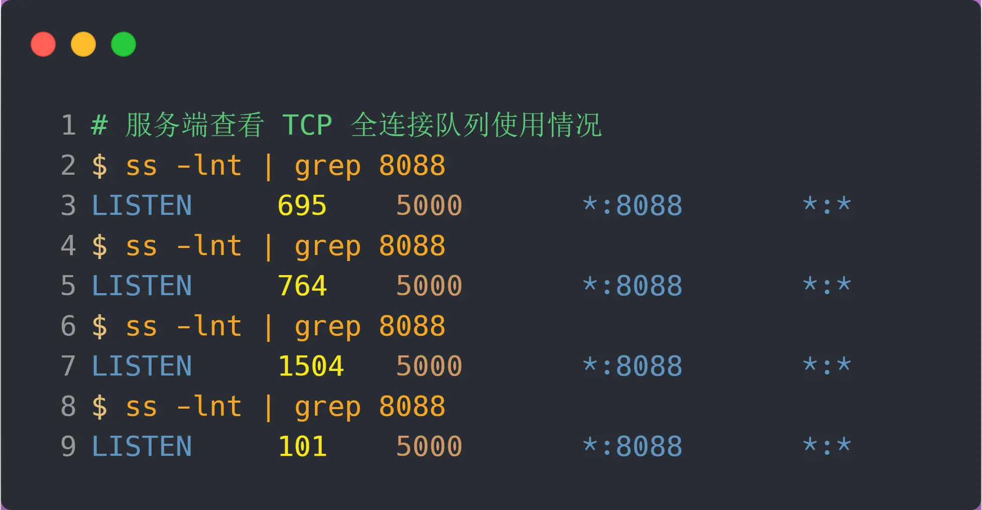 另外,不仅有源码分析,还会介绍 Linux 排查半连接队列和全连接队列的命令。