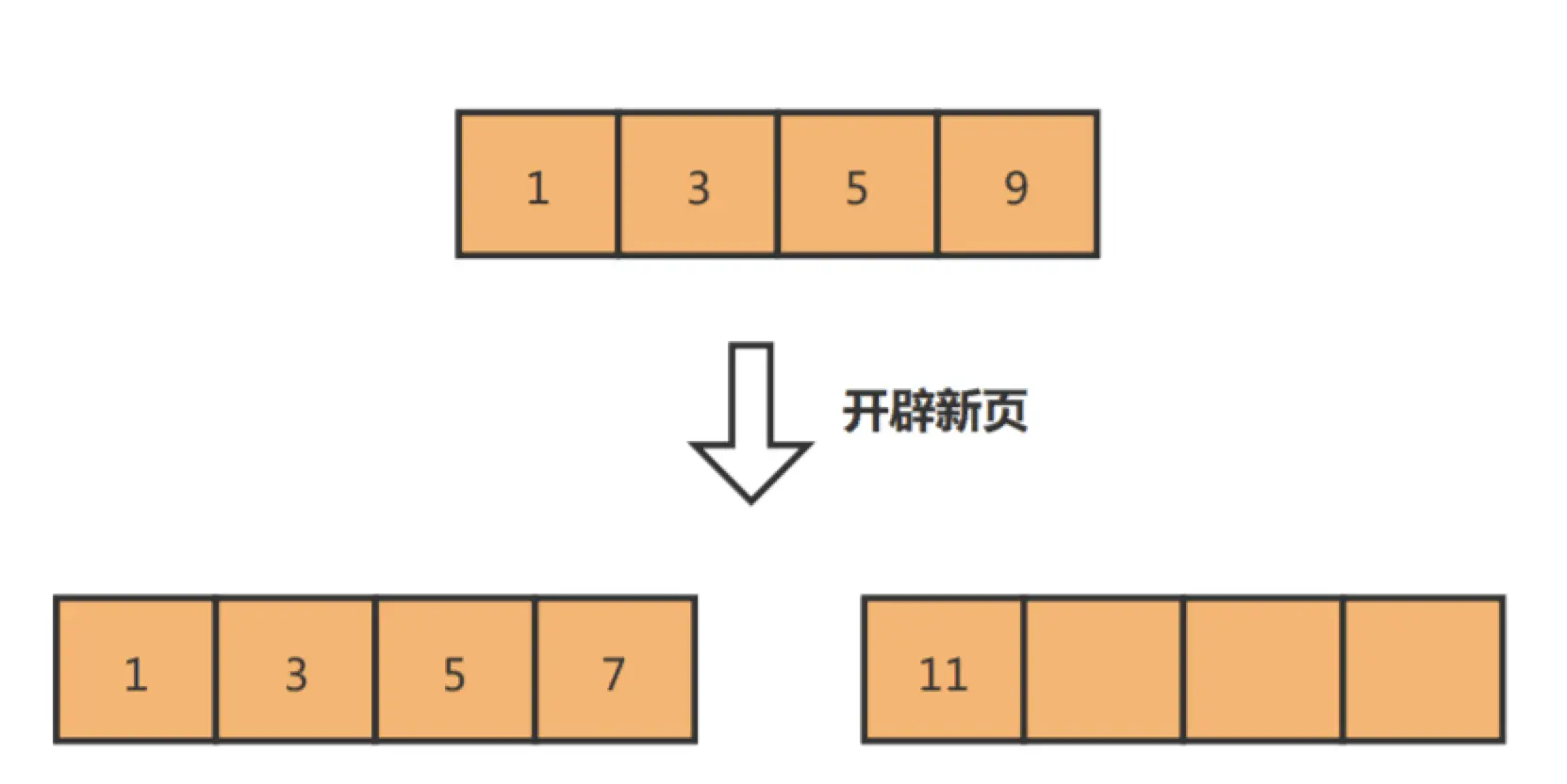 举个例子,假设某个数据页中的数据是1、3、5、9,且数据页满了,现在准备插入一个数据7,则需要把数据页分割为两个数据页: