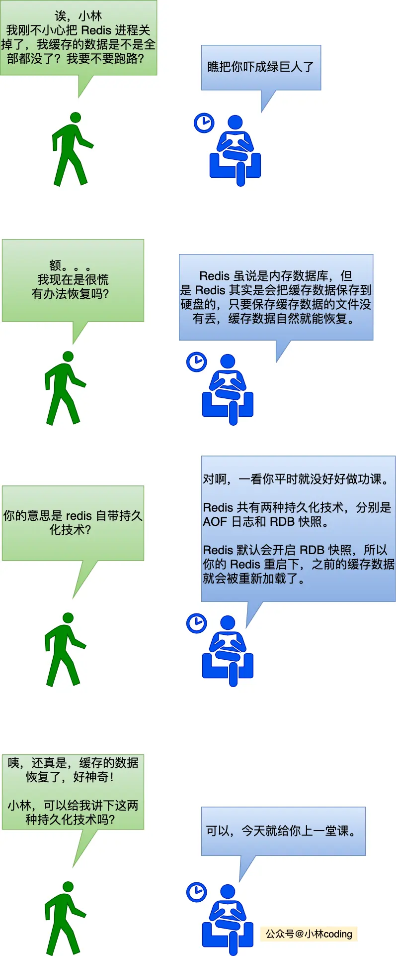 这次小林给大家介绍了 Redis 持久化技术中的 AOF 方法,这个方法是每执行一条写操作命令,就将该命令以追加的方式写入到 AOF 文件,然后在恢复时,以逐一执行命令的方式来进行数据恢复。