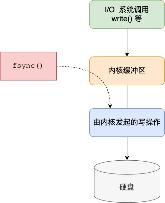 如果想要应用程序向文件写入数据后,能立马将数据同步到硬盘,就可以调用 fsync() 函数,这样内核就会将内核缓冲区的数据直接写入到硬盘,等到硬盘写操作完成后,该函数才会返回。