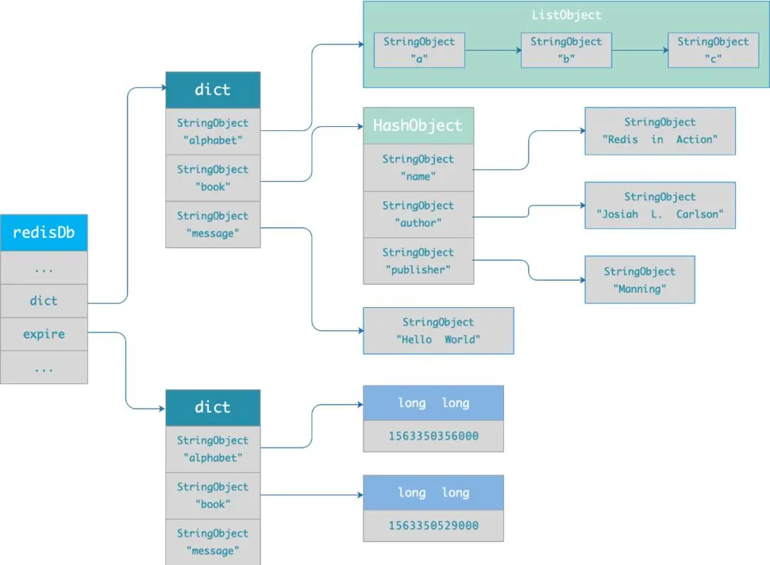 • 过期字典的 value 是一个 long long 类型的整数,这个整数保存了 key 的过期时间;