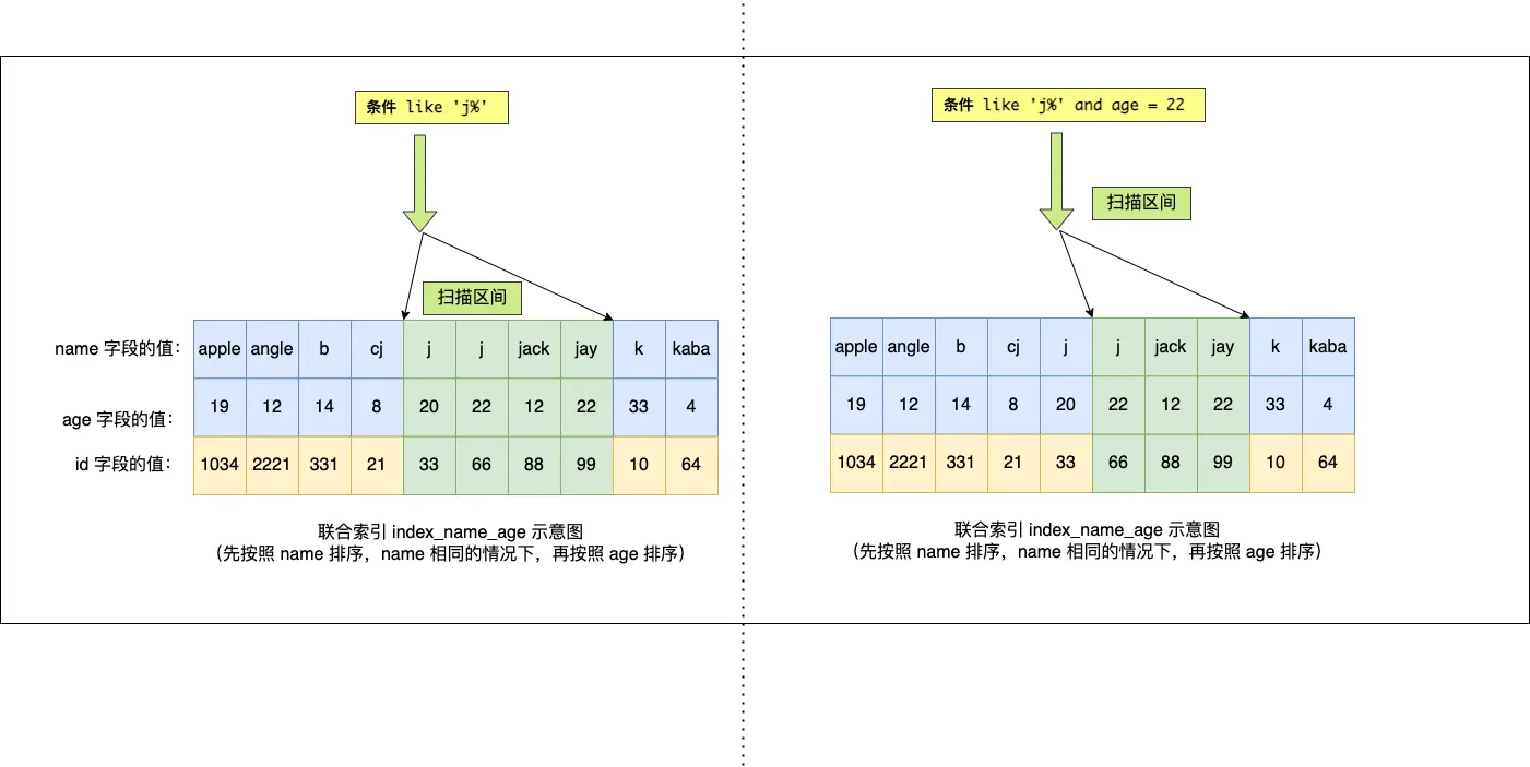- 联合索引要能正确使用需要遵循最左匹配原则,也就是按照最左优先的方式进行索引的匹配,否则就会导致索引失效。