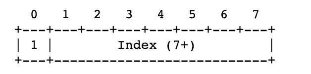 - 最前面的 1 标识该 Header 是静态表中已经存在的 KV。(至于什么是静态表,可以看这篇:HTTP/2 牛逼在哪? (opens new window))