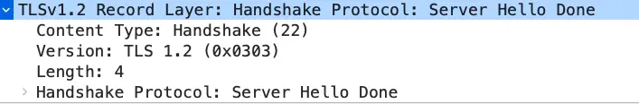 随后,就是「Server Hello Done 」消息,服务端跟客户端表明:“这些就是我提供的信息,打招呼完毕”。