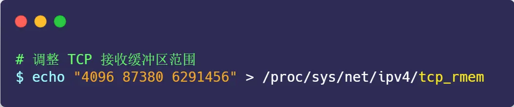 而接收缓冲区的调整就比较复杂一些,先来看看设置接收缓冲区范围的 tcp_rmem 参数:
